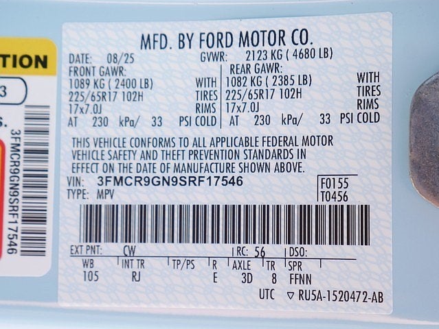 Robins Egg Blue 2025 Ford Bronco Sport Heritage 4WD 4WD 8-Speed Automatic 1.5L EcoBoost